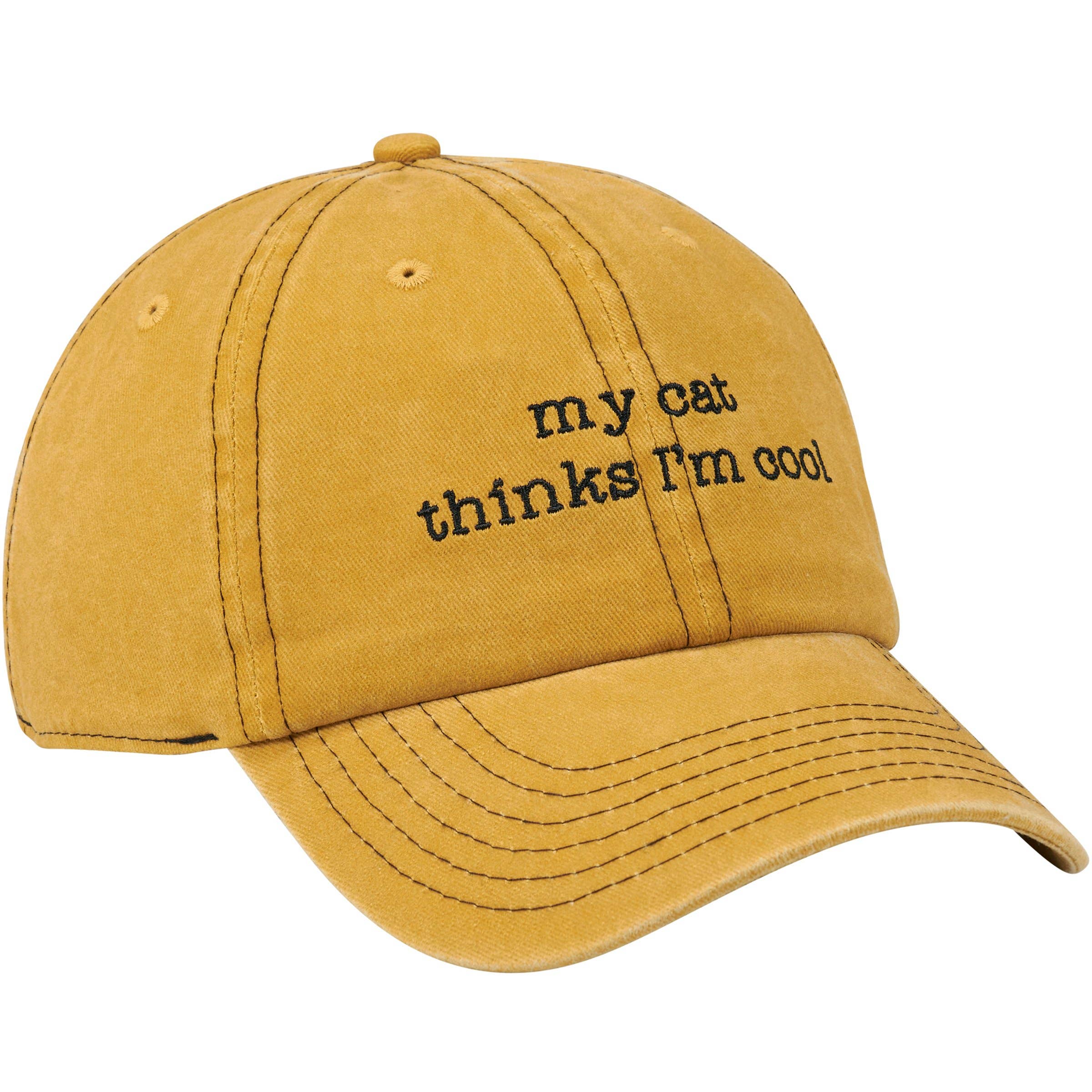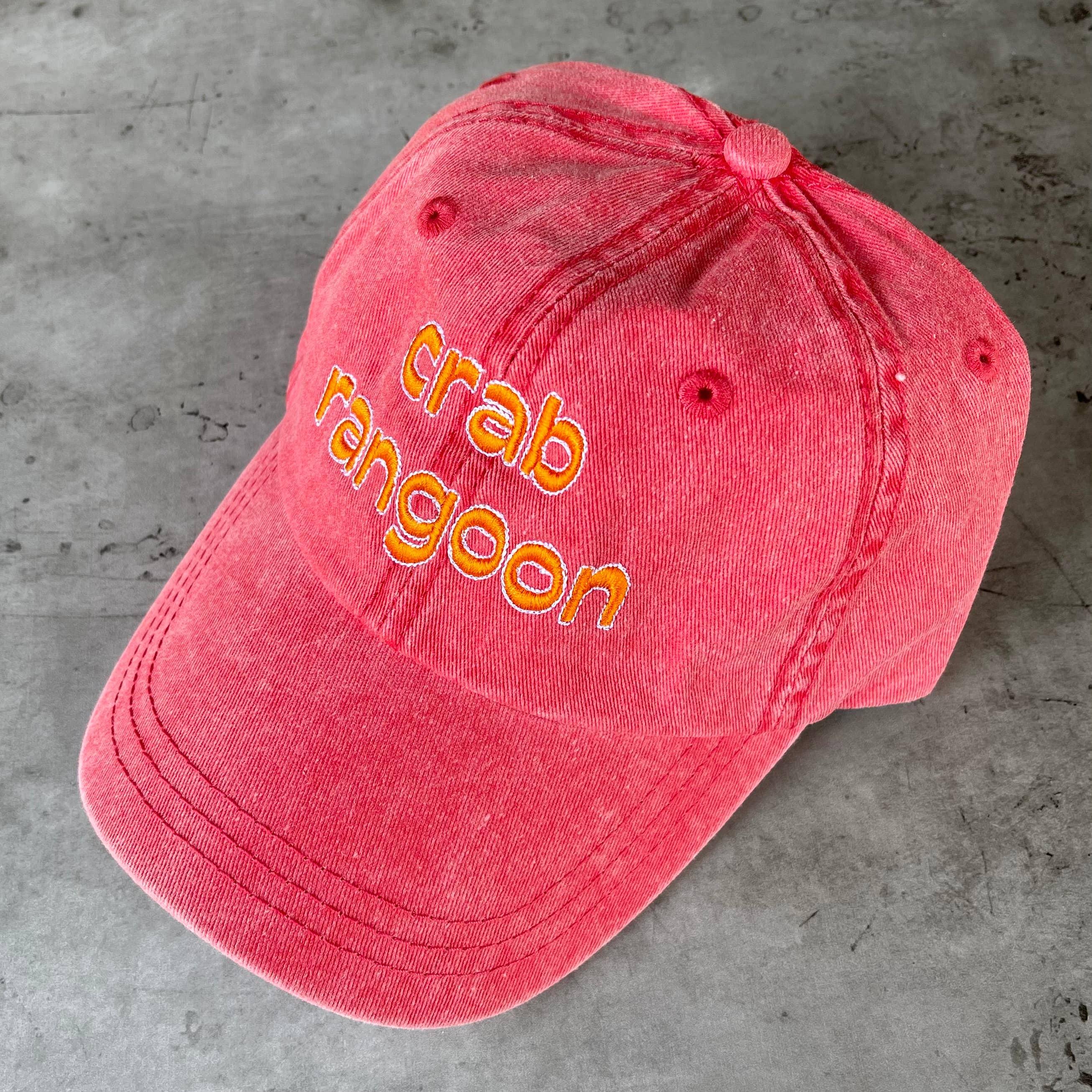 -one size fits most dad hat -embroidered in the US, manufactured in Bangladesh -pale yellow with red and white embroidery(some embroidery overlaps as seen in the pictures, we are not considering this a flaw is it gives it the vintage look we really like)
