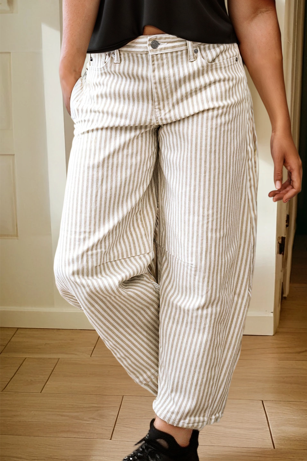 SKU: DISCO7713901-P2-S Made in China Aesthetic: Casual and Streetwear Care Instructions: Hand wash Fabric: 50%Polyester+50%Cotton Fit: Missy Occasion Theme: Everyday Occasion: Everyday and Loungewear Pant Length: Knee Pant Style: Straight Pattern: Solid Rise Style: High Season: Fall/Winter Weight: 0.58 kg (1.28 lb)