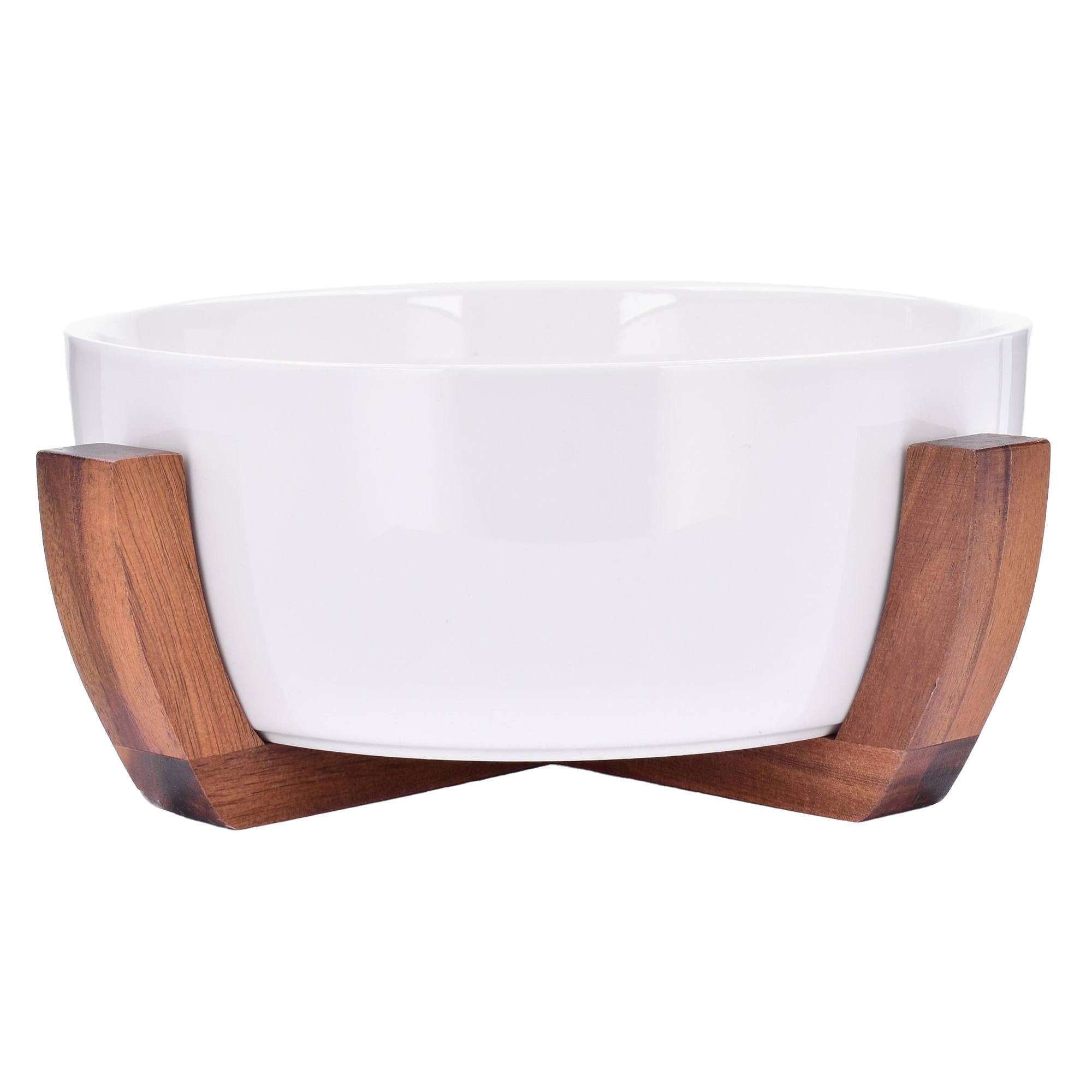 101 oz White Porcelain Salad Bowl with Wood Base