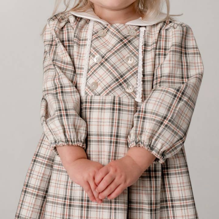 Adorned with timeless florals, the Hazel dress is a perfect choice to keep your little ones stylishly warm as they step into the upcoming colder seasons. The pretty dress has a classic Annafie silhouette with delicate long sleeves and a white peter pan collar. The dress features front panel details and buttons on the front and is fully lined. - 100% fine cotton - Machine washable at 30°C - Sizes 3 months to 8 years