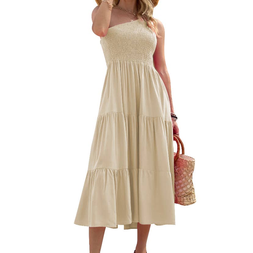 SKU: SZ2-DR55407WT, SZ2-DR55407WT, SZ2-DR55407WT, SZ2-DR55407WT Made in China Aesthetic: Bohemian and Classic Care Instructions: Hand wash Dress Style: Bodycon and Fit & Flare Embellishment: Ruffles and Slit Fabric: 97% polyester 3% elastane Fit: Contemporary Neckline: Strapless Occasion Theme: Easter, Mother's Day, and Wedding Occasion: Resort / Vacation and Wedding Guest Pattern: Solid Season: Spring/Summer Skirt & Dress Length: Midi Sleeve Length: Sleeveless Product Language: English