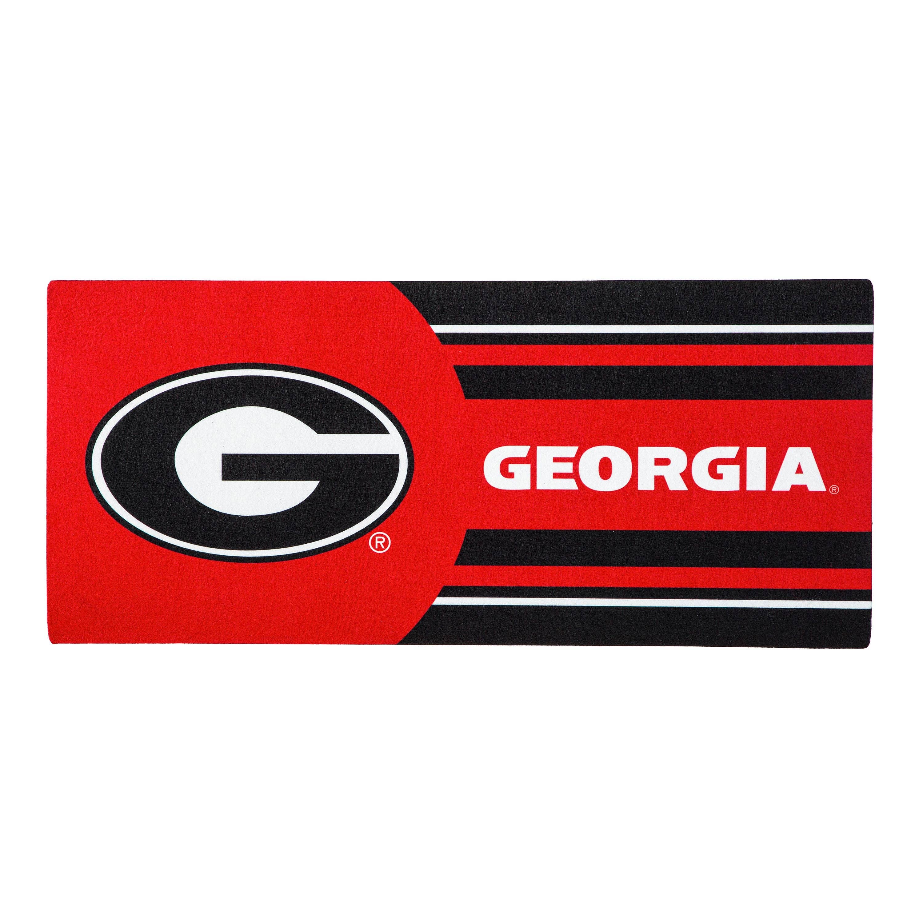 Game day is here! Dont be the only one not showing support. Place this mat in front of the door to welcome friends and family to the home. Sure to incite cheers of fellow fans, it makes the perfect gift for anyone who spends their days checking the score. Crafted from heat-sublimated polyester with a rubber backing, this versatile mat is designed to fit perfectly within Evergreen's switch doormat bases. The mildew resistant mat is ideal for indoor or outdoor use and features a skid-resistant backing to help keep it in place. This welcoming mat will freshen up your stoop season after season while ensuring your home stays debris-free. For stains, simply spot clean with soap and warm water.