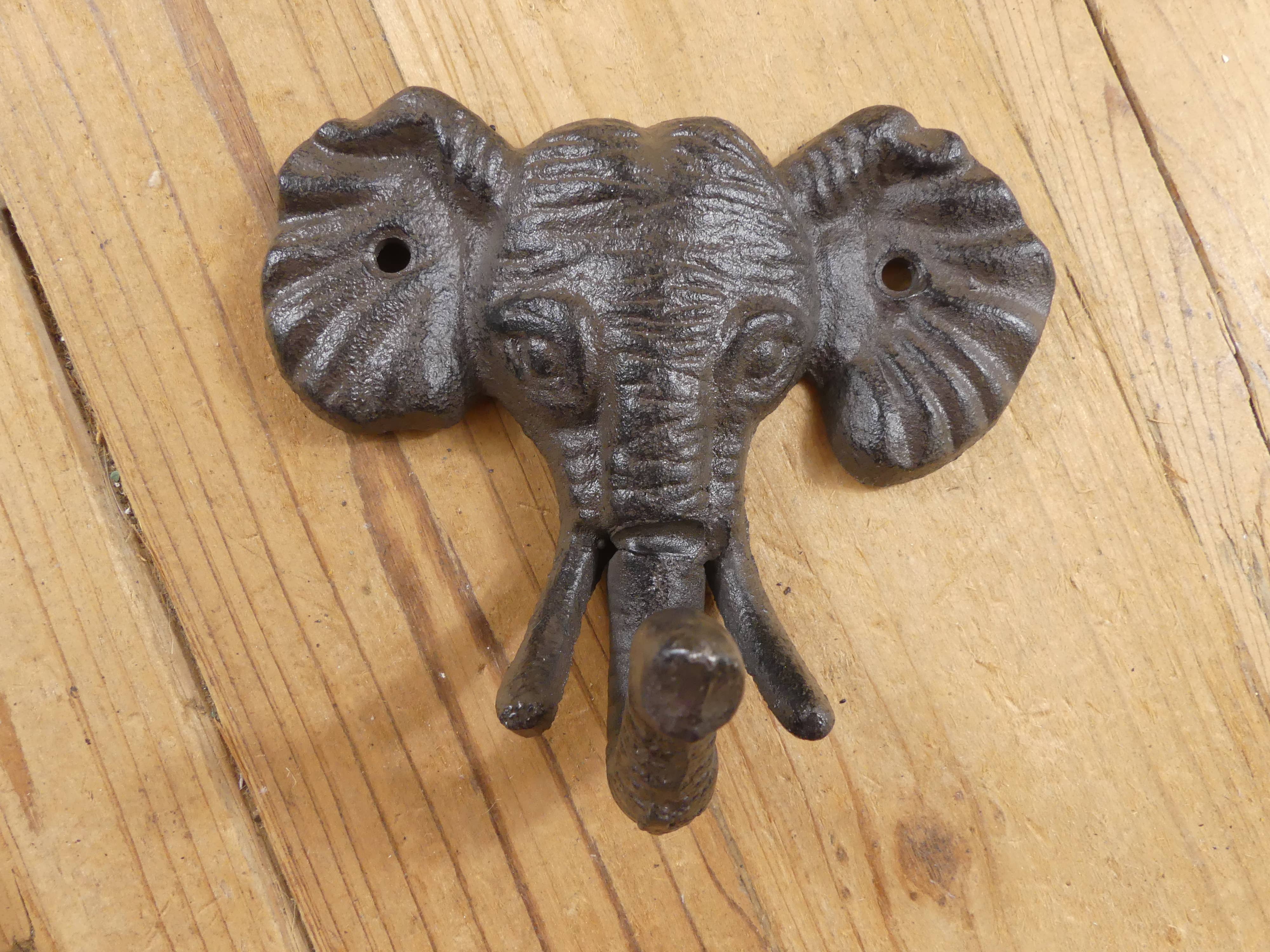 This Rustic Gold Cast Iron Elephant Hook 5 inch is the perfect addition to any safari themed home. Ideal for hanging clothes and accessories, this durable elephant hook 5 inch is handcrafted from cast iron. Easily mountable, display this decorative hook to show those who visit your home your affinity for the safari lifestyle. NOTE: Wall mounting hardware not included. Excellent elephant decoration Functional and decorative hook Solid and heavy - handcrafted from cast iron Classic vintage rustic appearance One functional hook ideal for hanging clothes and accessories Easily mountable (screws not included)