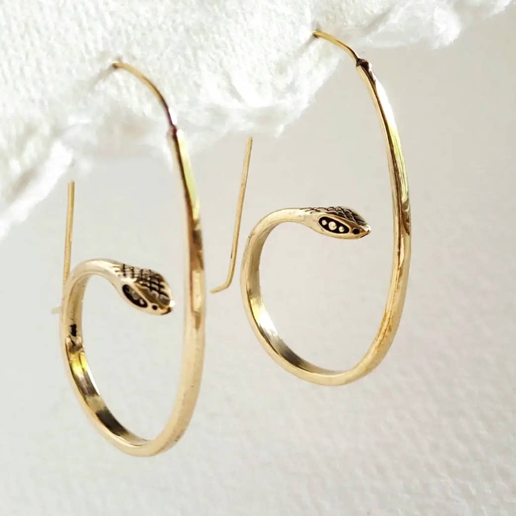 Wholesale Enamel Green Eyes Snake 18K Gold Plated Hoop Earrings - FGS