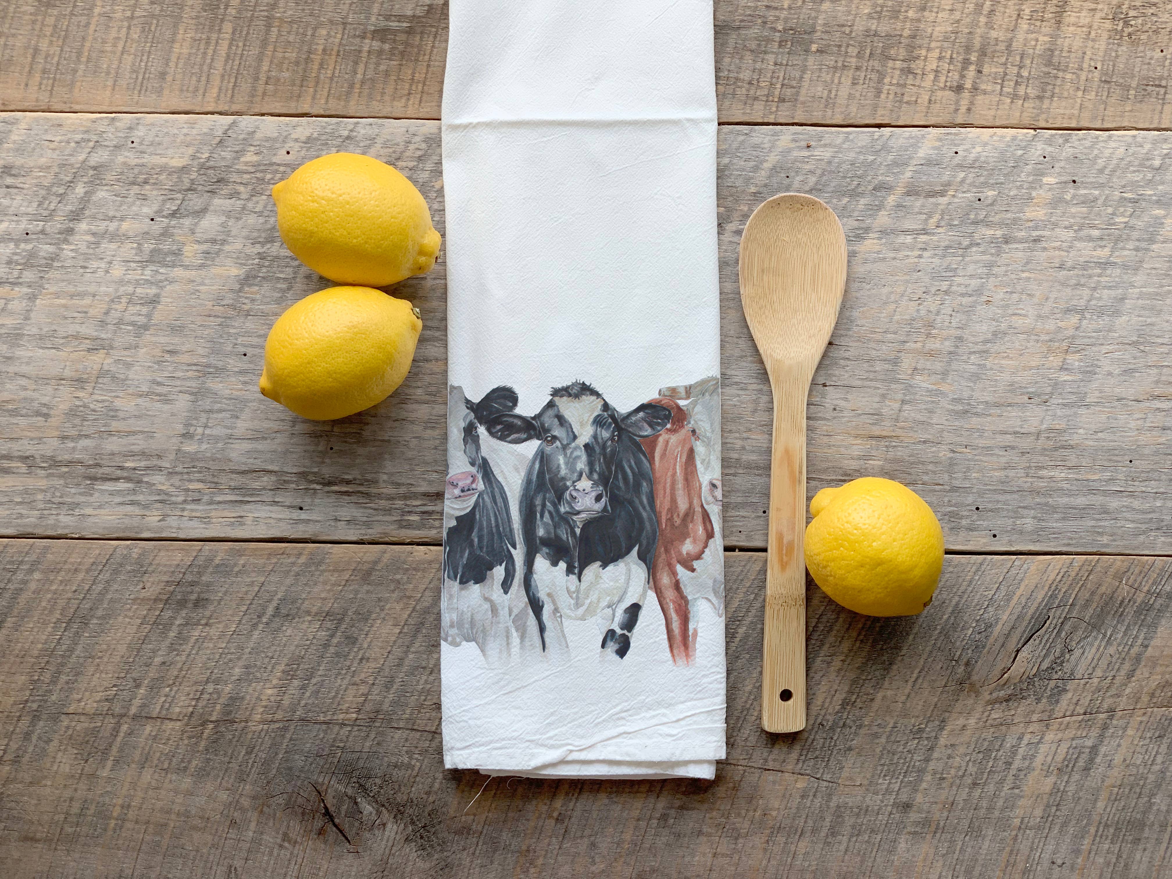 Watercolor White Cow Steer Flour Sack Tea Towel