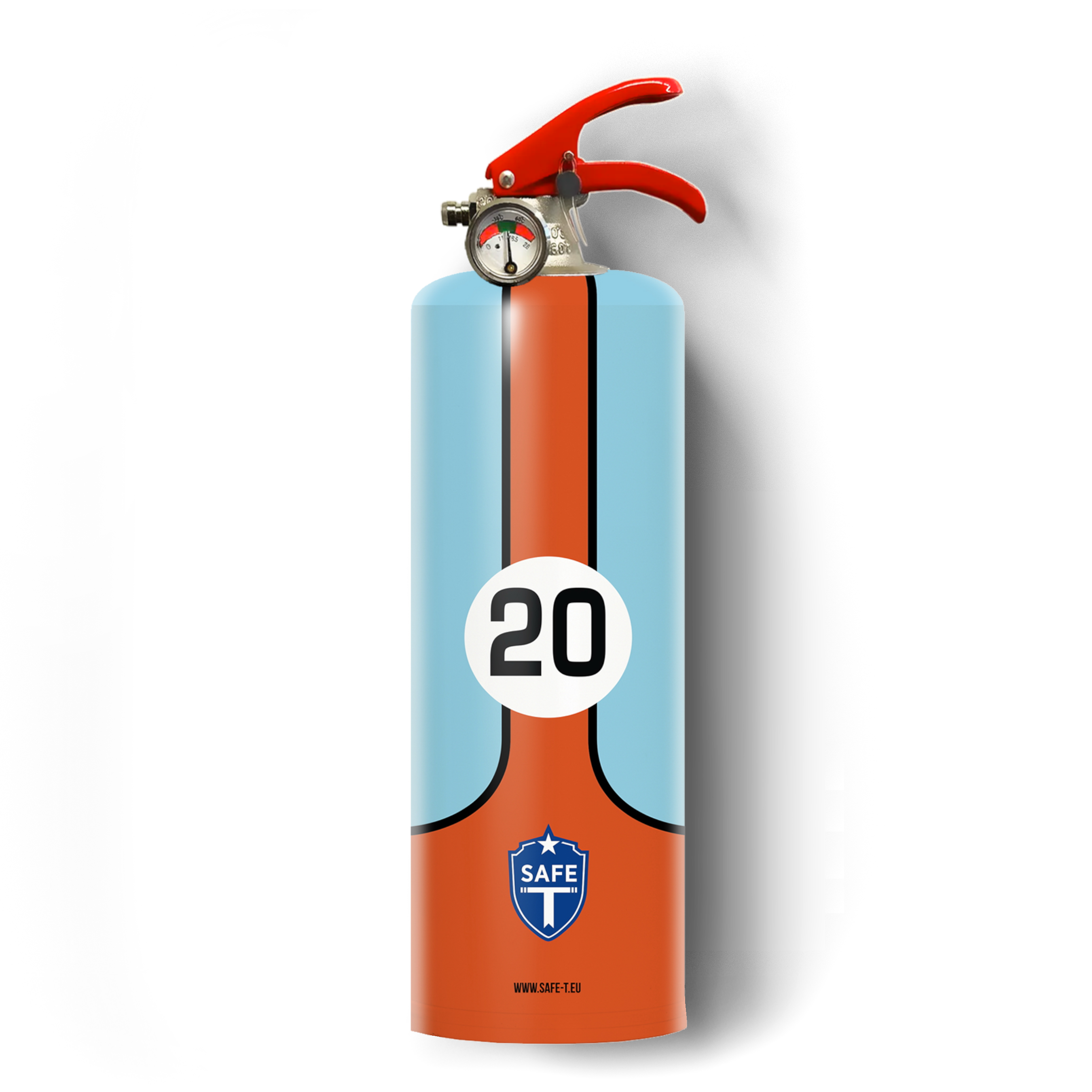 Rev up your safety with the Safe-T 911 CUP Design Fire Extinguisher – where iconic style meets fire protection. This sleek, racing-inspired extinguisher not only puts out fires but also adds a touch of elegance to any space. Elevate safety to the fast lane – because extinguishing fires should be as stylish as driving a Porsche. Safe-T is not just functional, but also visually appealing. Designed to be displayed and easily accessible, it doubles as a stylish home decor piece. With its adherence to strict CE standards and use of premium materials, Safe-T stands out as a sophisticated and top-performing fire extinguisher. Technical Information: * Diameter: 3.4 inches * Height: 11 inches * Weight: 4.4 pounds * Steel and Brass * Extinguishing agent: 1 KG – 2.2 LB * Powder ABC 40 - inert salt * Internal pressure at 20 °C: 14 bar (Nitrogen) * Minimum and maximum temperatures for use: -20 °C and +60 °C * CE 0029 approved tank and EN 3-8 technical standards. Note: Lifestyle pictures are design approximations. Delivered in a protective charcoal felt sleeve with a silver or brass valve. This design is sleeved.
