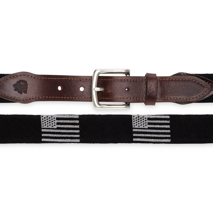All of our needlepoint products are hand-stitched and hand-assembled 100% in Haiti using the finest materials available. These include DMC pearl cotton thread, 18-count mono canvas, full-grain leather, and a solid brass buckle with a shiny nickel finish that never chips. 1.25" wide. Available Sizes: 30, 32, 34, 36, 38, 40, 42 and 44 Note: $10 premium for sizes larger than size 44