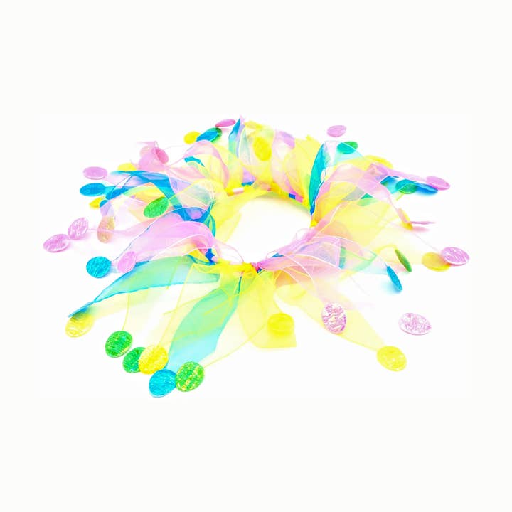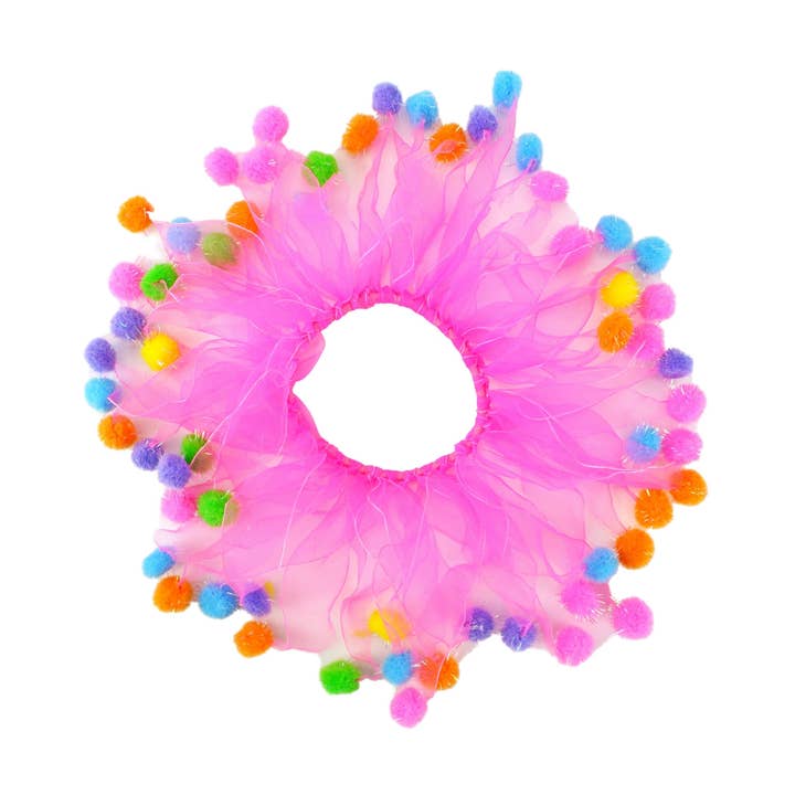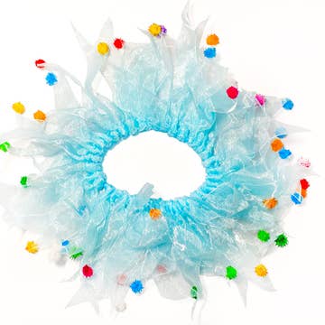 Let the world know it's your pooch's birthday with a pet collar to fit the festivities! Sheer, bright blue tulle ribbons twined around an elastic band make celebrating your dog's birthday super fun! The collar slips on easily and comfortably sits around your pet's neck. Each tulle ribbon is tipped with fuzzy, shiny multi-colored pom-poms! - Good for dogs, cats, and other pets. - Not to be used as a restraint. - Small fits up to a 10" neckline - Medium fits up to a 14" neckline - Large fits up to an 18" neckline - X-Large fits up to a 22" neckline