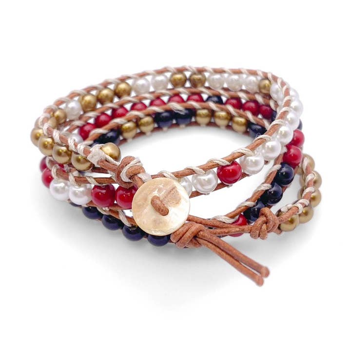 SKU: 23WI11B3 Made in Honduras Color: Yellow Gold Material: Gold Plated Stone Type: Crystal and Pearl Style: Minimalist and Sentimental Weight: 8.5 g (0.3 oz) Production: Ethically sourced and Fair trade