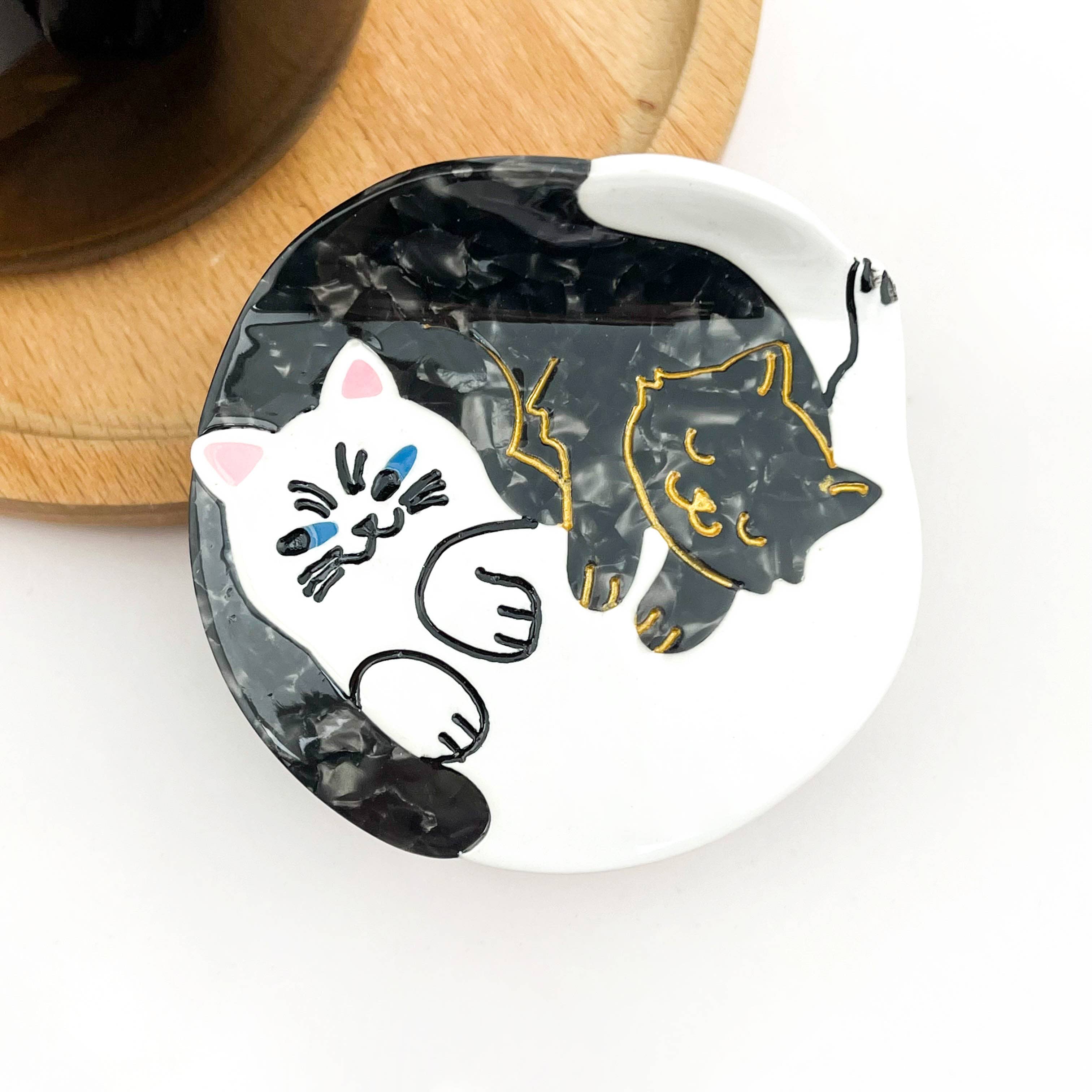 Unique handmade hair clips are silver plated and diamond cut in white cat jewelry theme. You will love our matching earrings and bracelets.