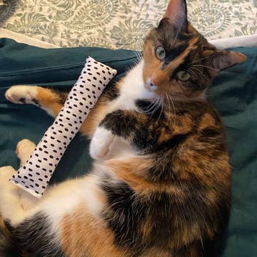 Where style meets playtime. Sweet Pickles Designs’ soft and stylish Organic Catnip Cat Toys are handcrafted in Portland, Oregon. The Garden Floral Big Kicker Toy features Rifle Paper Fabric canvas and filled with a combo of organic catnip and fluff. Size: 13" long x 2.75" wide (may vary slightly). The Big Kicker is long enough for kitty to hold on and kick and play the day away.
