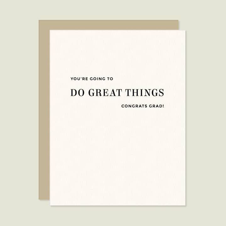 Celebrate their big achievement with our elegant foil Fancy Congrats Graduate card. A2 size (4 1/4" x 5 1/2" folded) • blank interior • gold foil on heavyweight FSC cardstock • white envelope • packaged in a clear sleeve luxury greeting cards graduation card for the graduate congrats grad