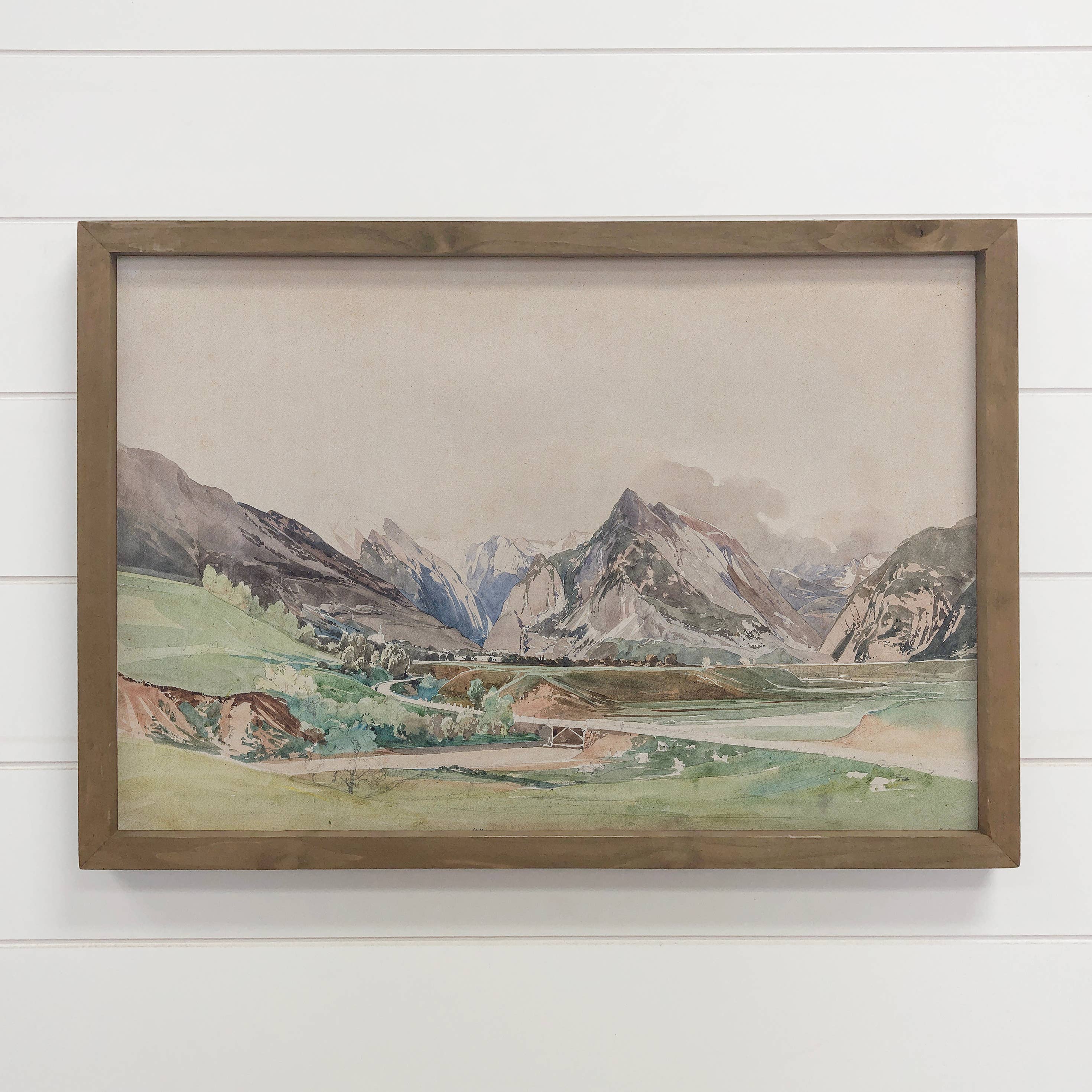Muted Watercolor Lakeside Framed Antique Art