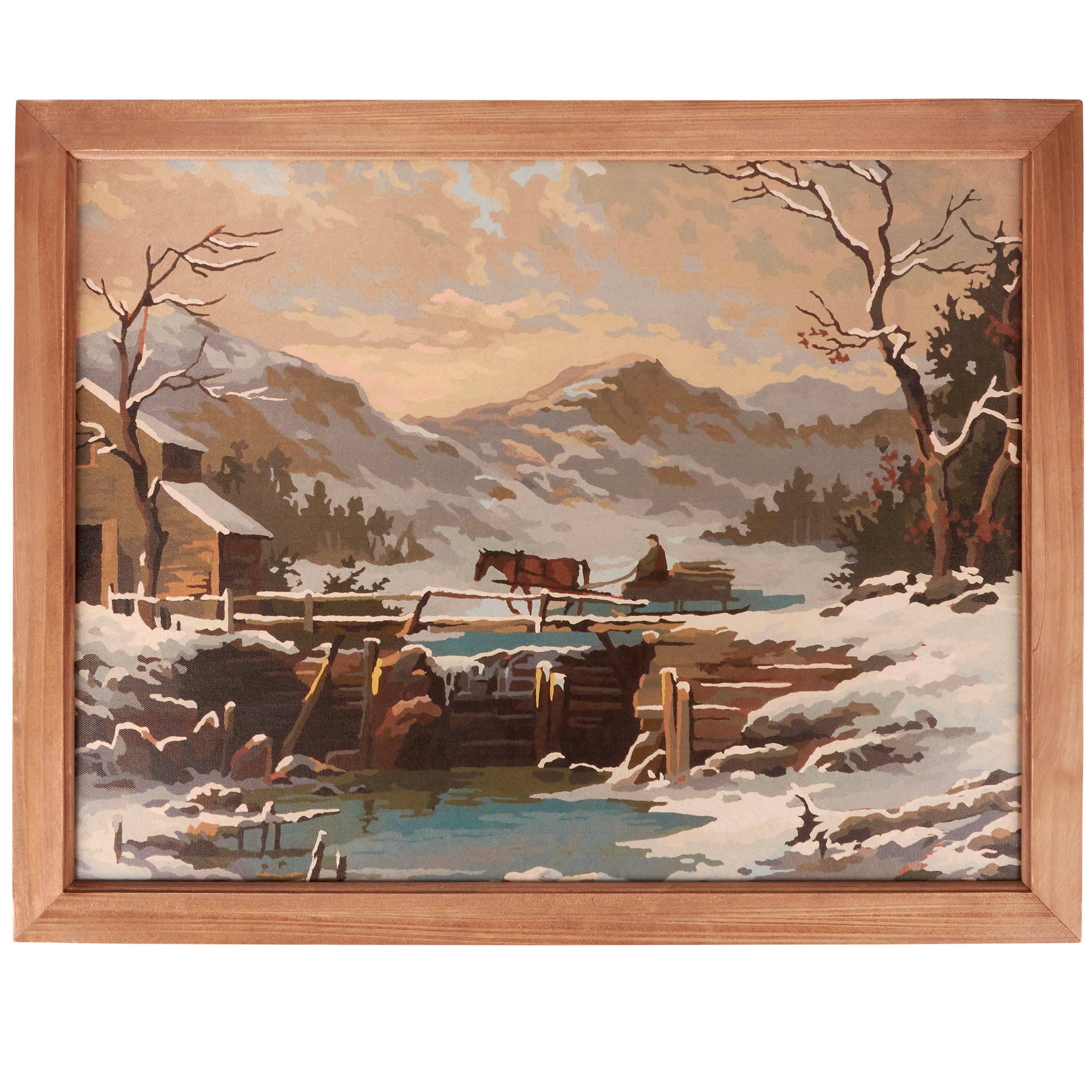Muted Watercolor Lakeside framed art is printed on quality canvas, giving it a lasting finish, then placed into our handcrafted Ebony frame. This is an authentic reproduction of the original artwork. Features: Artwork printed on quality, canvas fabric Includes paper backing and hanging hardware Does not include glass Made in USA Care: Do not get canvas wet If artwork gets smudged or dirty – try gently wiping with dry, soft cloth.