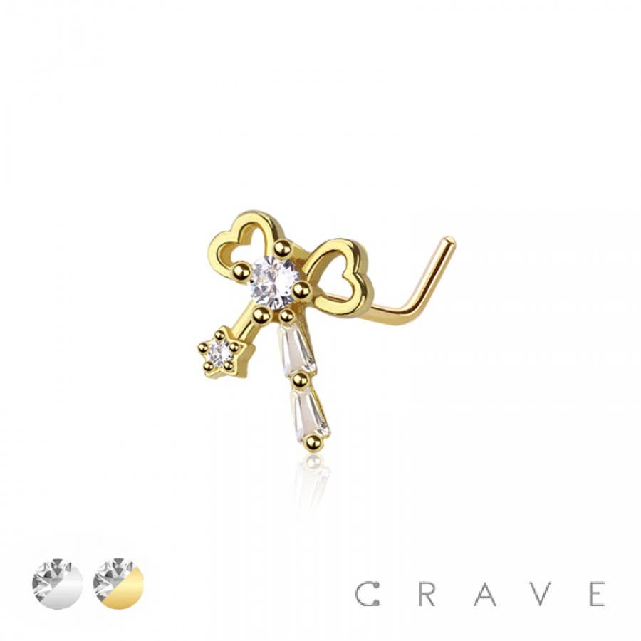 CZ CHERRY 316L SURGICAL STEEL L-SHAPE NOSE RING Product Code: NOSL-128 Material: 316L Surgical Steel/Brass Sold By: Piece Thickness: 20GA (0.8MM) Length: 1/4" (6.5MM)