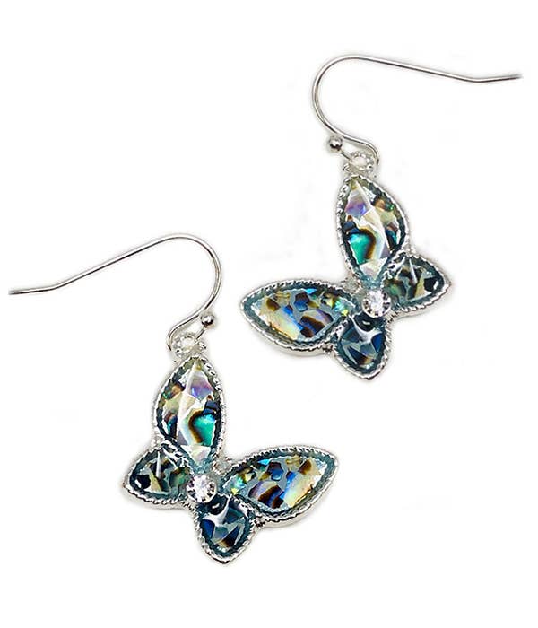 FR2168 Silver Abalone Dragonfly Dangle Earrings
