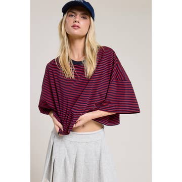 Knit Sweater Cotton Polyester Nylon Striped Half Button Up Collar Neck Short Sleeve Top