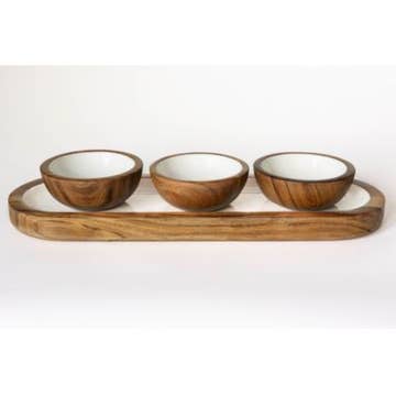 Are you a snack enthusiast looking for the perfect way to present your favorite chips and dip in style? Our Paulownia Chip Holder with Dip Bowl is the ideal choice for transforming your snack time into an elegant and delightful experience. •Bowl is removable for easy cleaning. • Material: Paulownia, Ceramic • Size: Tray: 12" Dia x 2" H, Bowl:4" Dia x 2" H • Care Instructions: Base: Spot Clean Only. Bowl: Hand Wash Only.