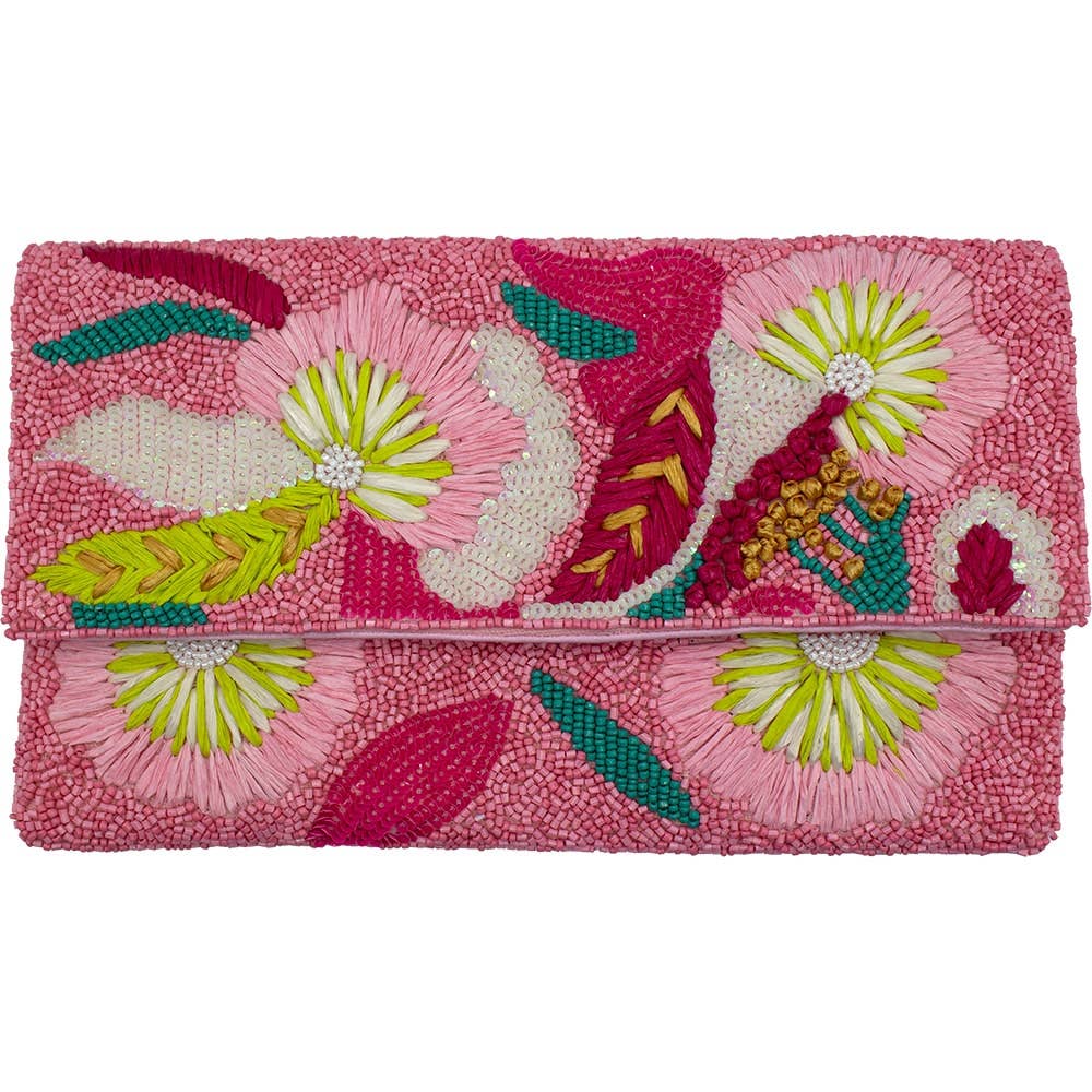 Monstera Leaf Beaded Women's Clutch Bag