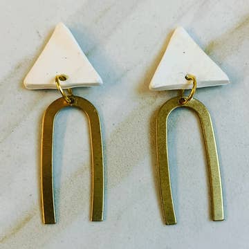 I'm forever-obsessed with architecture, and these earrings remind me of the beautiful arched doorways I saw while visiting the historic Alhambra in Spain. Hand-painted acrylic, with a silky smooth, matte finish resembling the look + feel of stone, but without the weight. Made of 65% upcycled acrylic + hand formed gold-fill {g} or oxidized sterling silver {s} earwires. Measure .5"W x 2.5"L.