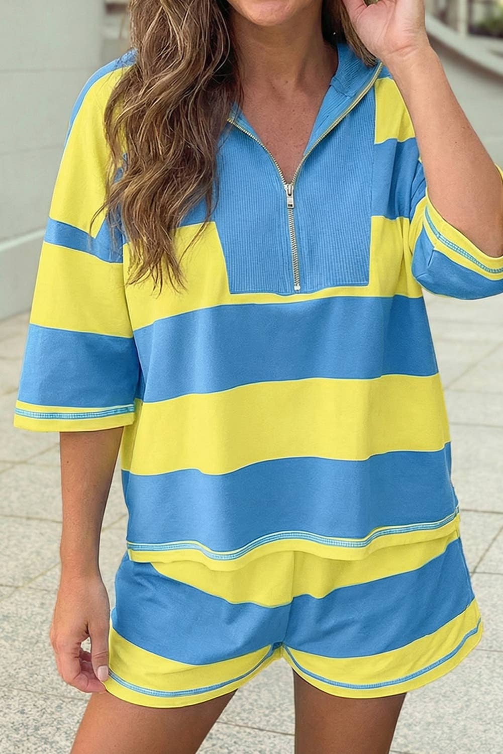 Ahhh... Here it is! This year's cute summer outfit! The Cabana Terry Shorts Set in sapphire blue. Made with our signature ultra-soft, "LushLoop" terry cloth, this bestselling set is what we call "cozy meets coastal." It's basically a shortcut to feeling comfy and confident yet still put together, without overthinking it. The top has a relaxed fit, button-down front, and wear-it-open-or-closed versatility. The matching shorts have a super stretchy elastic waistband. This means you can wear the shorts high at your waist or low on your hips, depending on your mood. Oh, and they have functional pockets for those fidgety hands or keys and chapstick. Keep it coordinated, or mix and match with your staple favorites, like a tank top on top or jeans on the bottom. Either way, you’ve got a cute summer look on lock. Why we love it: * Signature LushLoop terry fabric: Breathable and stretchy. Perfect for hot days. * Bestselling shade: This blue is standout perfection. * Pockets: Functional and flattering. * Easy care: Machine wash gentle, hang dry, done. * Everyday fit: Relaxed, body-friendly, and wearable on repeat. From poolside relaxing to spontaneous happy hours, this set crushes the “cute summer outfits” brief. Every. Single. Time. Sizing: See sizing chart for details. NOTE: If you need to restock the shorts or top from the set, just reach out to us and we'll get you squared away! Pre-orders of out-of-stock sizes are expected to ship on or around April 15, 2026.