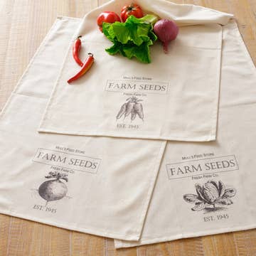 Our eat local illustration featuring all your favorite fruits and veggies and hand drawn type! Hand screen printed in charcoal on super soft, absorbent cotton flour sack towels! Screen printed in our studio with eco-friendly & durable water based ink. Towels are cured and ready to use. - 100% Cotton, made in USA - Towel Measures approximately 27 inches x 27 inches and features a handy hanging loop in the corner Subtle variations in image placement and ink may occur as these are hand printed