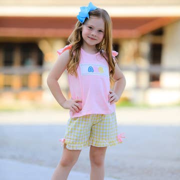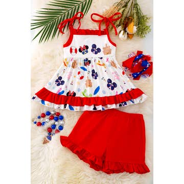 Wholesale Girls Blue Mermaid Tiered Crossback Top & Summer Short Set