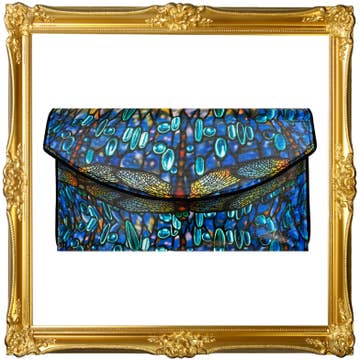 A star case that looks just as beautiful on display as on your arm, the Stargazer Cyndi Clutch features glittering gold and silver celestial bodies — a double star, crescent moon, and stars — inlaid in a swirling marbled blue background, all polished to a mirror shine. With a deep blue fabric liner, removable gold chain shoulder strap, and plenty of space inside for your night-out essentials (any cell phone, keys, lipstick, and our slim Card Wallet), this clutch is a magical addition to any outfit. * 7.75" wide by 5.5" tall by 2.25" deep (20 cm x 14 cm x 6 cm) (large enough to hold most current phones, plus more essentials) * Deep blue fabric liner * Interior Betsy Dare logo * Detachable gold chain shoulder strap, 47" long (121 cm)