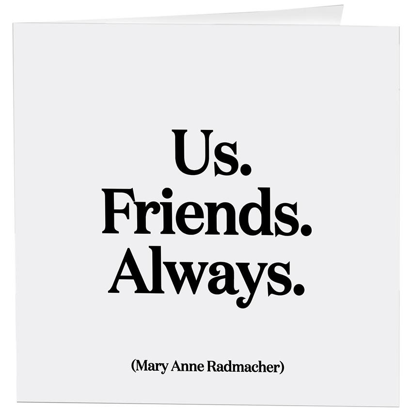 5" square greeting cards. Blank inside. Printed in the USA using eco-friendly inks and responsibly sourced paper. *See our 48-pocket card spinner with best-seller assortment under 'collections.' Friendship, Inspirational, Quotations, Quotes, Motivational, Positive, Thinking Of You