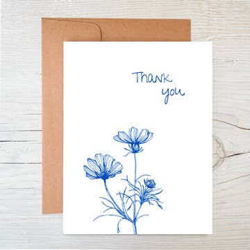 Thank You Botanical Greeting Card Floral Imagery Gratitude Show your appreciation with the Thank You botanical greeting card, featuring intricate floral imagery and a thoughtful, modern design. This elegant card combines a pressed botanical specimen with a graceful expression of gratitude in stylish typography. Paired with a recycled kraft envelope, it offers an eco-friendly way to express your heartfelt thanks, while maintaining a timeless sophistication. Perfect for any occasion, this card is an ideal choice for sending your gratitude with a personal touch. Key Features: - Featuring a pressed botanical specimen - Thoughtful expression in modern typography - Inside left blank for personal sentiment - Paired with a kraft colored recycled paper envelope - Comes in a clear cellophane sleeve - Size: 4.25” x 5.5”