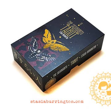 The ninth printing! ❤️ My complete 78-card original art tarot deck. ++ also available in travel size ++ The Japanese word: "sasuraibito" most closely translates to "wanderer." It's an old-fashioned literary term that is falling out of use, meant to describe a person ever-seeking, searching for a place of healing and refuge. This deck is designed to aid the curious wanderer, and accompany you on your adventures to come. This 78 card deck is inspired loosely by the Raider-Waite deck, contemporary living in the Western world, and Japanese and Buddhist concepts and ideals. The cards measure 2.75''×4.75'' (70mm×120mm) on 330gsm (smooth, sturdy) card stock with a matte UV finish, and are encased in a beautiful, sturdy lidded box featuring the card back design. Also included is a 63-page guidebook, with brief notes on the meanings and symbolism of my cards. The deck is loosely inspired by the Rider-Waite tarot deck. While some cards follow common iconography fairly closel