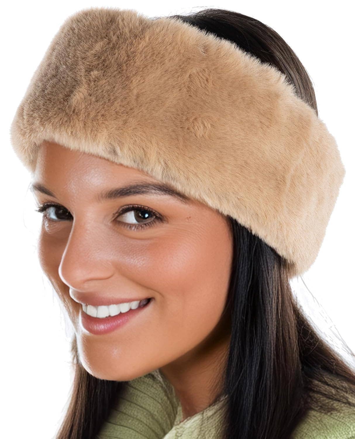 - Long Hair Faux Fur Stretch Headband Hat for Winter. - To use 2 ways for Head or Neck Warmer. - One size fits most all with Elastic Back Strap. - Ultra-soft material for a comfortable warm feeling. - Size(W x H): 30cm x 9cm - Material: 100% Polyester. Outside High-Quality Faux Fox fur. Inside: Lined with soft warm fleece.