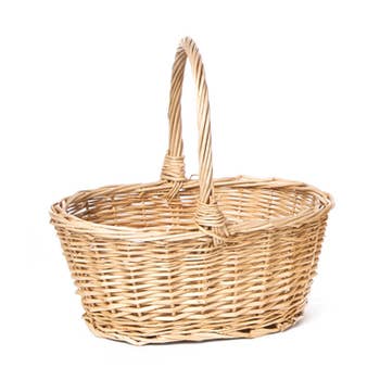 Gather an array of beauty in farmhouse displays with the Natural Willow Flower Gathering Baskets sets. These versatile baskets are made of woven willow wood with an open gathering style and a large arched handle. The small measures 10.5" high by 14.75" long by 11" wide and the large is 12" high by 17" long by 13" wide. These baskets are perfect for filling with an enticing mix of Springtime florals. Or use them around the farmhouse for a variety of displays or storage scenarios. They look darling holding yarn and rag balls or in the kitchen filled with fruit and faux food stuffs.