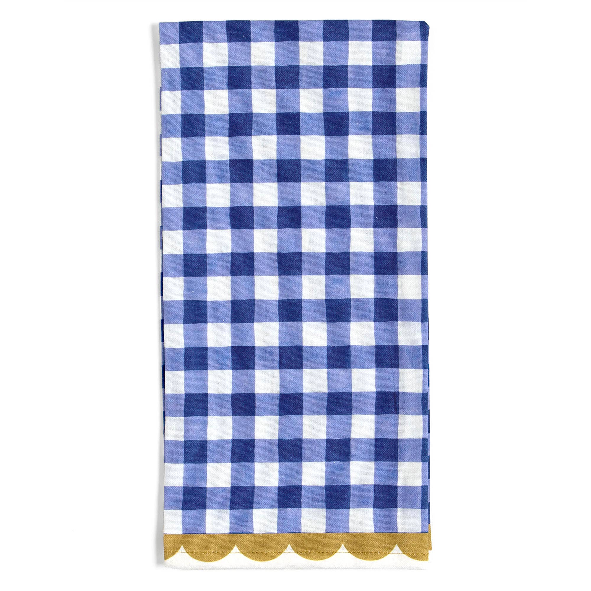 Introducing our Green Gingham Scalloped Tea Towel, a delightful kitchen essential that blends functionality with charm. Crafted with care and adorned with a classic green gingham pattern and scalloped edges, this tea towel brings a touch of timeless elegance to any kitchen decor. Made from premium-quality, highly absorbent fabric, this tea towel is as practical as it is stylish. Whether you're drying dishes, lining a bread basket, or simply adding a pop of color to your kitchen, this versatile accessory is sure to impress. The Green Gingham Scalloped Tea Towel makes for a perfect gift for home cooks, bakers, hostesses, and housewarming parties. Whether for a birthday, special occasion or just because, our Green Gingham Scalloped Tea Towel is sure to delight anyone who loves adding a touch of whimsy to their home. Material l Cotton Size l 19" x 28" Care Instructions | Gentle use and gentle-cycle wash only.