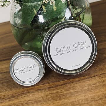 Introducing our luxurious cuticle butter enriched with nature's finest ingredients designed to nourish and protect your delicate cuticles. Made with high - quality natural ingredients, our butter is the perfect solution to dry and cracked cuticles, leaving your nails and surrounding skin looking healthy and hydrated. Benefits Our cuticle butter contains a nourishing blend of natural oils, shea butter and beeswax, which work together to moisturize and protect your cuticles, leaving them soft and supple. Our all - natural formula is free from harsh chemicals, so you can rest assured that you are using a safe and gentle product on your skin. Ingredients Shea butter : Nourishes and moisturizes the skin, leaving your cuticles feeling soft and supple. Each tin is 1 oz. and last approximately 4 months. A little goes a long way.