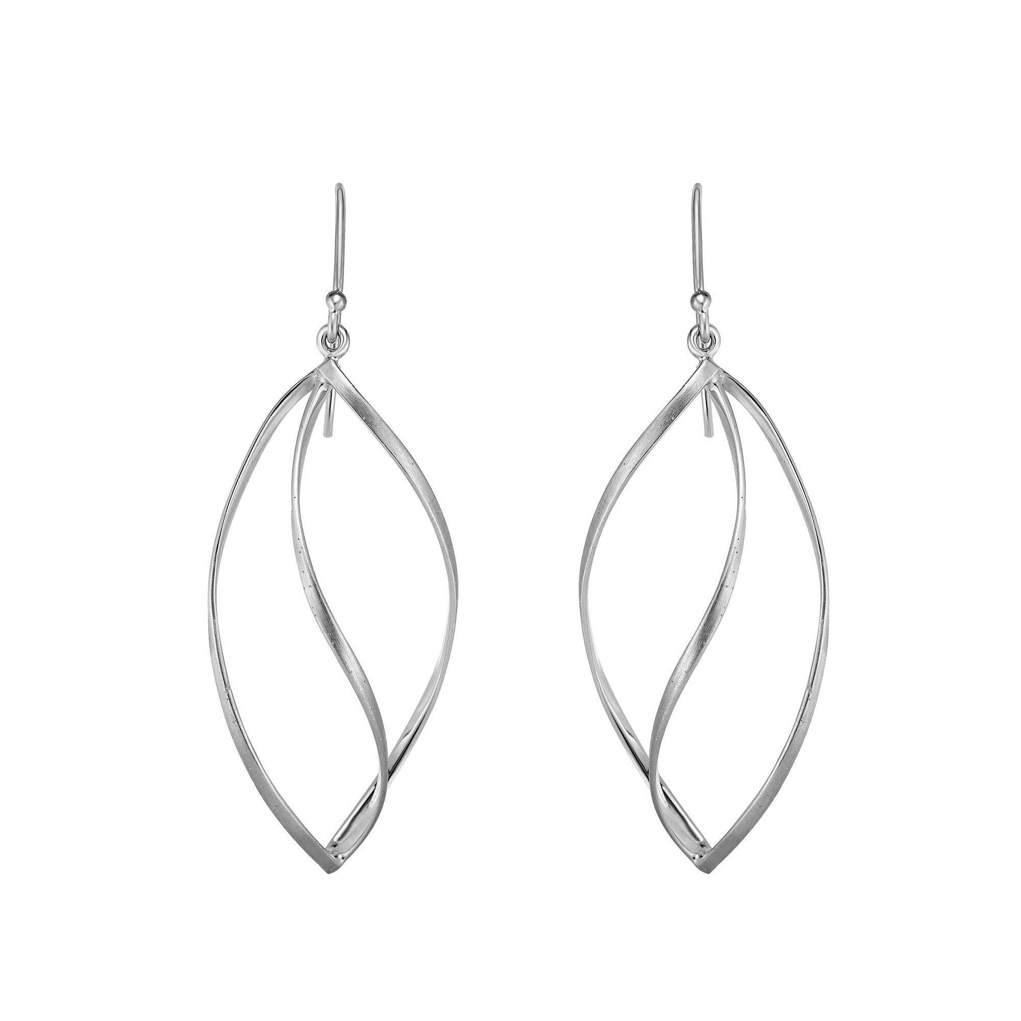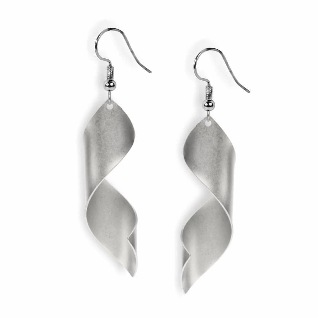 These earrings are inspired by a photograph of one of Man Ray's iconic muses, Catherine Deneuve. A legendary photographer, painter, and filmmaker, Man Ray (1890-1976) was arguably one of the most versatile and inventive artists of this century. Finish: solid brass, electro-plated with non-tarnishing matte silver, ear wires are hypoallergenic. Gift Boxed with Provenance Card