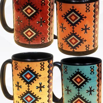 This Mara mug design is a great way to start your day and hails from our popular hand-etched, glazed and finished mug collection! 4.5 inches tall and holds up to 16 oz. Microwave and dishwasher safe, with lead-free paint. Made in Mexico.