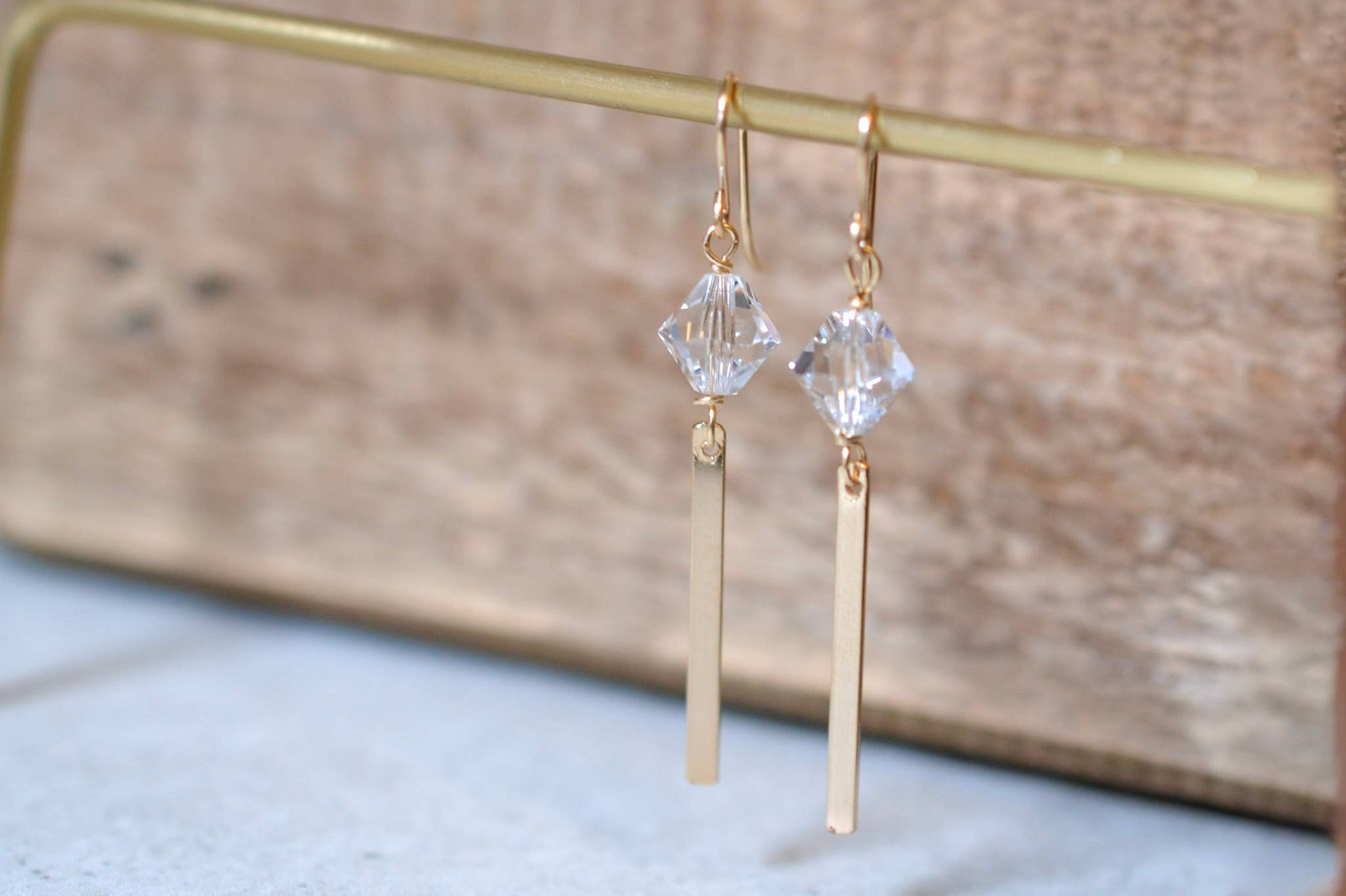 Crystal Earrings Gold Champagne Silver Elegant