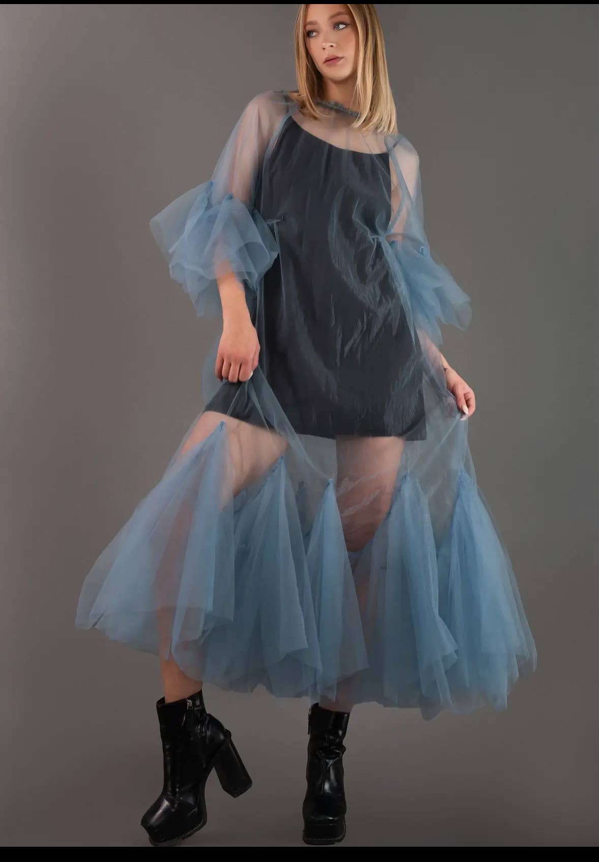 * Polyester + Tulle * Elastic Bust- please double check measurements! * Lined