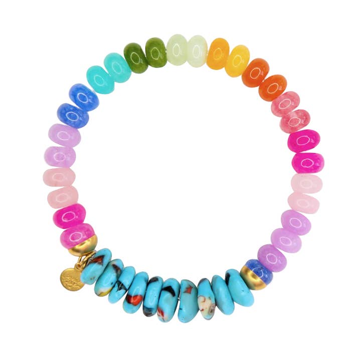 For the woman who thought she had her bracelet stack just right, she's met her match with the Julep bracelet. It layers, it makes a simple statement, drapes beautifully, and never goes out of style. Our retailers say that their customers collect our bracelets, never take them off, give them as gifts, and keep begging for more options. A stunning combination of bold jade beads add multi-colored African accents create a cheerful, eye-catching design. Finished with gold detailing, this bracelet captures the spirit of fun and individuality. Perfect for stacking or wearing on its own, it brings a lighthearted touch to your daily look. Stretch fit for ease, designed for everyday wear. We have partnered not only with Anthropologie, Anthropologie Europe, and Neiman Marcus, but 600+ additional retailers nationwide, and we’d love to partner with you next! Woman owned. Handmade in the USA.