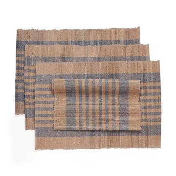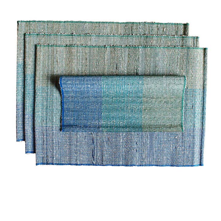 Handwoven upcycled placemats made from banana plant fiber and cotton blend by rural weavers in southern India. Each piece is crafted on traditional handlooms, giving new life to banana stems that were once treated as agricultural waste. A sustainable 4-piece set designed to bring texture, warmth, and contemporary elegance to your dining table. Durable and easy to maintain, these placemats are perfect for everyday meals or festive gatherings. They make thoughtful gifts for birthdays, housewarmings, Mother’s Day, Thanksgiving, or Christmas. Matching runner available to purchase separately. Material & Care: Banana plant fiber & cotton blend Size: 13" x 19" Handwoven on traditional handlooms Wipe clean with damp cloth; spot clean with mild soap solution, dry in shade Origin: Handmade in India Fair Trade Product – upcycled, artisan-made, eco-friendly, and sustainable. Due to the handmade process and variations in natural fibers, slight differences in color or weave may occur. These are marks of authentic artisan craftsmanship.