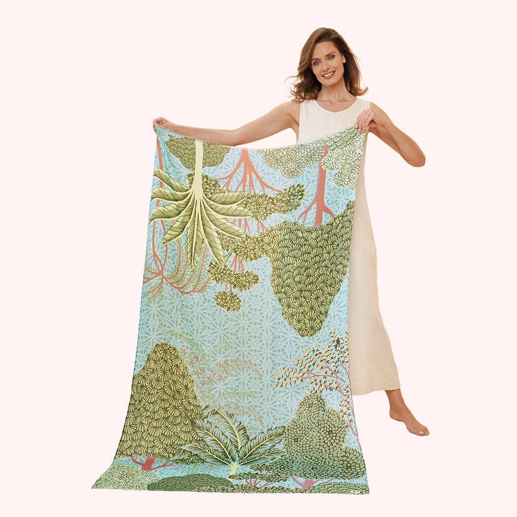 35"x35". 100% Silk. Rainforests are tremendously rich in animal life. Many species of rainforest animals are endangered and many other have gone extinct as the number of acres of rainforests on Earth decreases. This design is made with love and wish.
