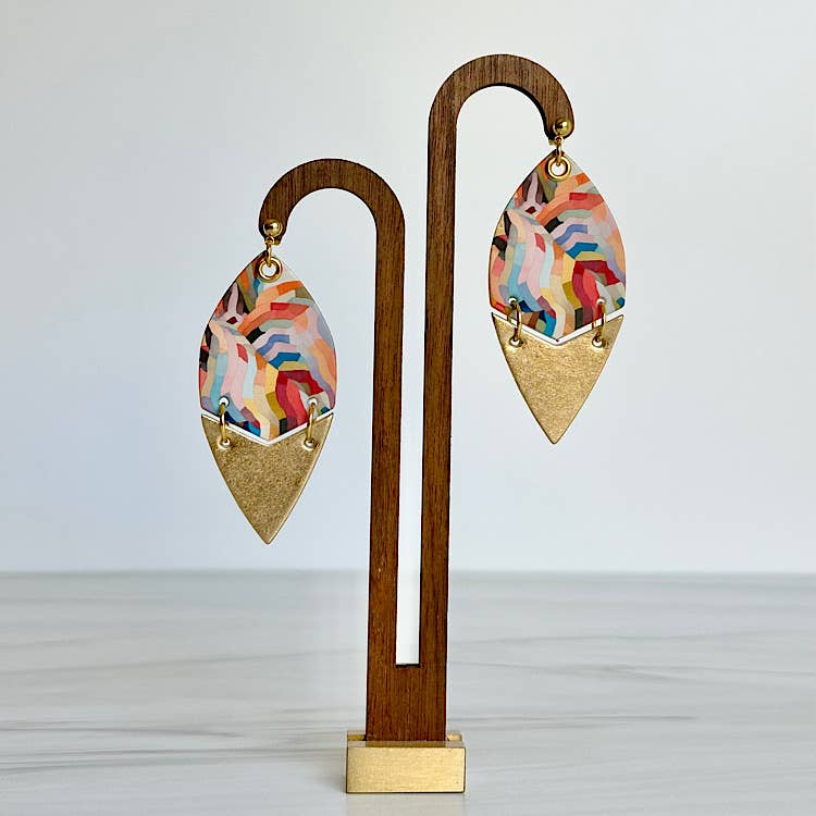 Size: 5/8" diameter top 3/4" x 2 long bottom Hardware: Post All earrings are made out of paper. They are sealed for water resistance but are NOT waterproof, please treat with care. MMP is not responsible for water damage. Nickel free hardware. Colors/patterns may vary slightly from example.
