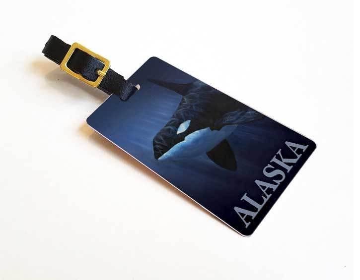 Alaska Luggage Tag Features * Printed on durable waterproof material * Adjustable black leather strap & buckle * Made in the USA * Retail display available These luggage tags can also be used as: - unique gift tag - party favor - Christmas ornament/stocking stuffer - and more This artwork is also available as: - Greeting Cards - Wall Art Prints The colorful painting on the front of this tag is sure to catch your eye at bag claim. It is titled "Eagle River Summer" by artist Karen Whitworth.