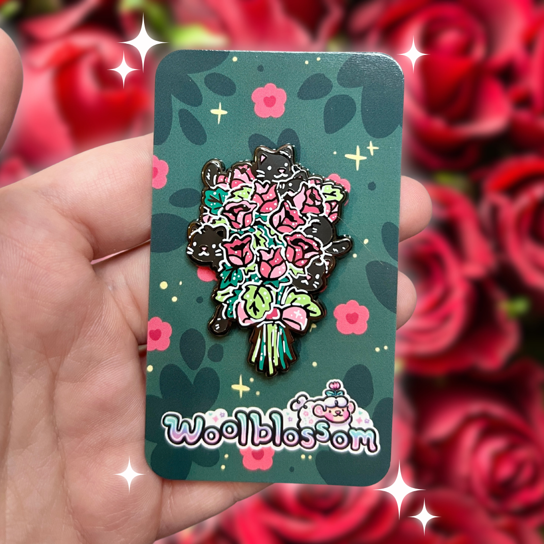 Woolblossom - Wholesale Lapel Pin/Button - Flower Shop Cat ~ Enamel Pin0