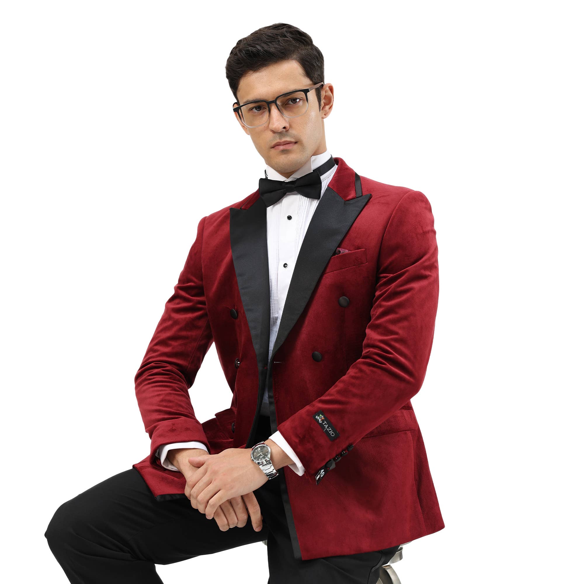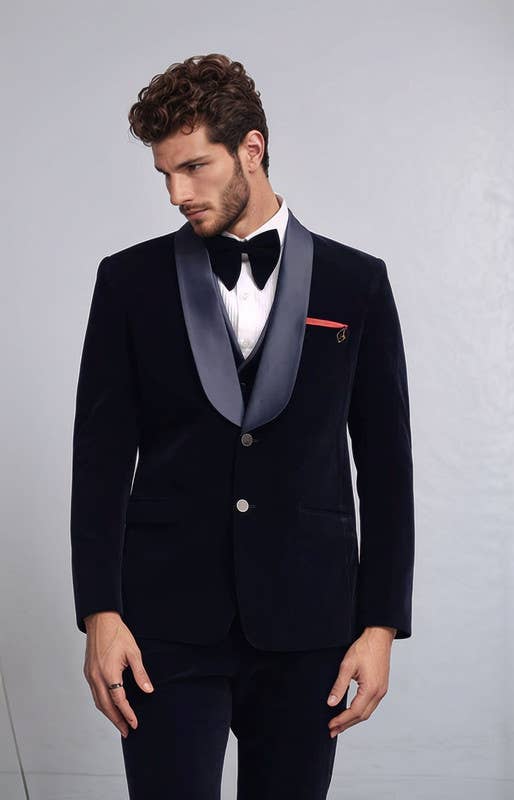 This burgundy velvet dinner jacket is sleek, timeless and ready for formal season. Complete with shawl lapel and enamel pin.