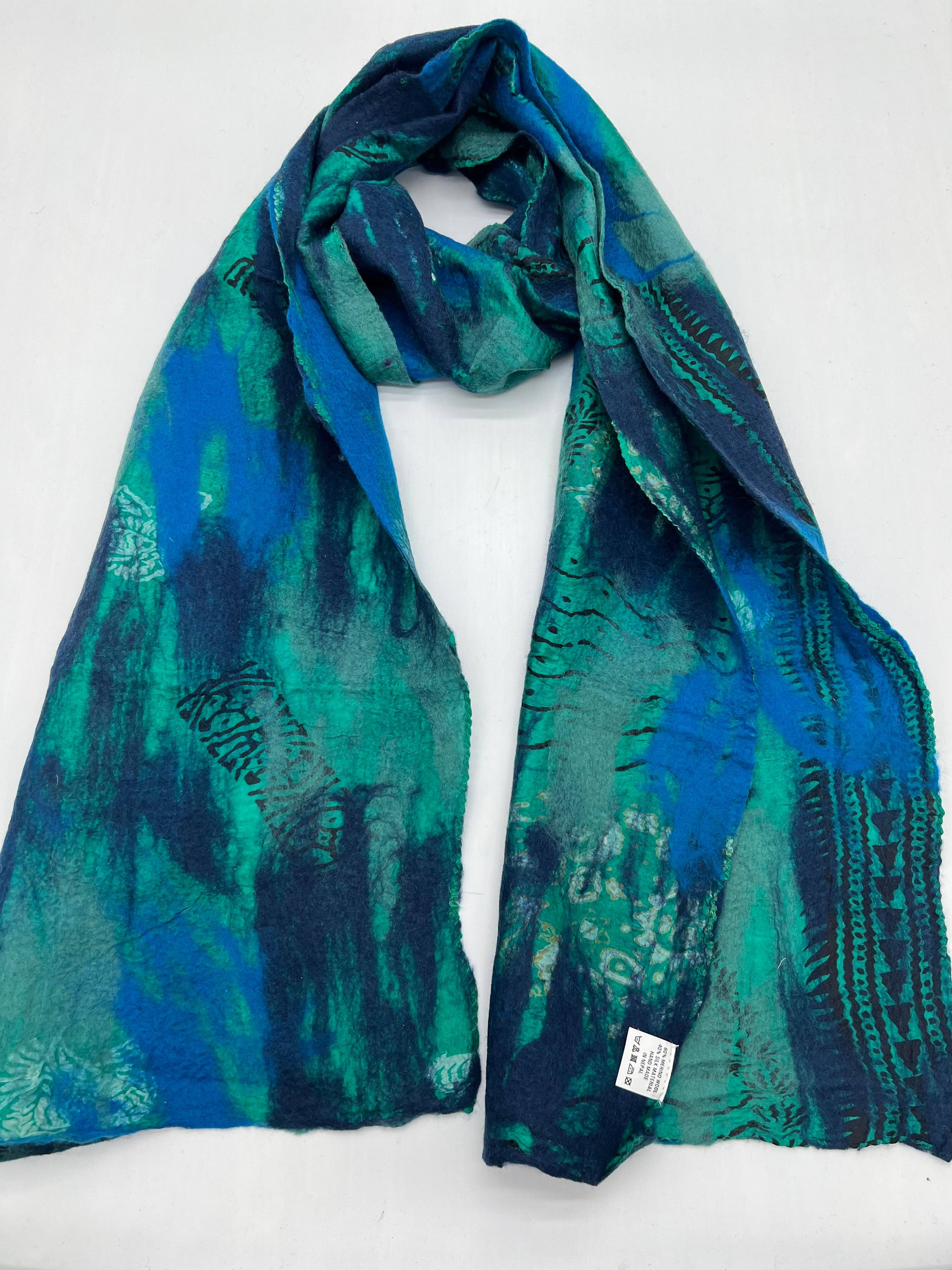 Sari Silk with Merino wool felted scarf Wash Type: Hand Wash/Dry Clean