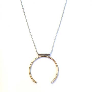 25x50mm pendant. 16-18" adjustable chain. 3 color options -gold fill. -2 tone sterling silver/gold fill. -sterling silver.