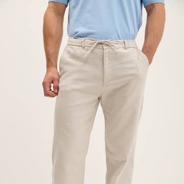 Our men's pants are incredibly versatile, perfect for transitioning from meetings to travel while offering the comfort of sweatpants. Materials + Construction: - 100% PTT Polyester fibers. - Premium grade Air Stitch™ nylon thread. - 4-way stretch. - Soft-peach finish. - Wrinkle resistant. - Water repellant and stain resistant. - Doesn't shrink after washing. - Doesn't warp or bag out. - Sourced from Japan. Fit: - Curved waist design. - Two deep front pockets. - Hidden zippered pocket inside front right pocket. - Smaller open pocket inside front left pocket. - Two zippered rear pockets. - Reflective tape inside both leg openings. - Black metal zippers (chrome in Cream color). Care: - Wash in a regular cycle with cold water. - Do not use softeners or bleach. - Tumble dry in a low heat setting or air dry. Sustainability: - Recycled material packaging. Our customers can't get enough of our mens pants, and we’re confident yours will feel the same way!