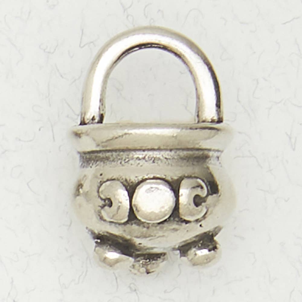 WICCA - The Wiccan Collection - THE WITCH'S CAULDRON The Witch's Cauldron is a symbol of the witches’ work. Most often they are made of cast iron and used to burn loose incense on a charcoal disc, to make black salt (used in banishing rituals), for mixing herbs, or to burn petitions (paper with words of power or wishes written on them). In some forms of Wicca and Celtic Mythology the cauldron symbolizes the Goddess Cerridwen. The cauldron also represents the womb (because it holds something) and on an altar it represents the earth because it is a working tool. Witches heal, but they also pursue wisdom and power. Just as the herbs mix in a pot to make a medicine, so the experiences of life mix to create understanding and wisdom. The many personalities of people mix to from a nation, tribe or circle. The nations mix to make our world. Pendants come on Legend Cards with a 33 inch long black cord. Packaged on Recycled paper cards.